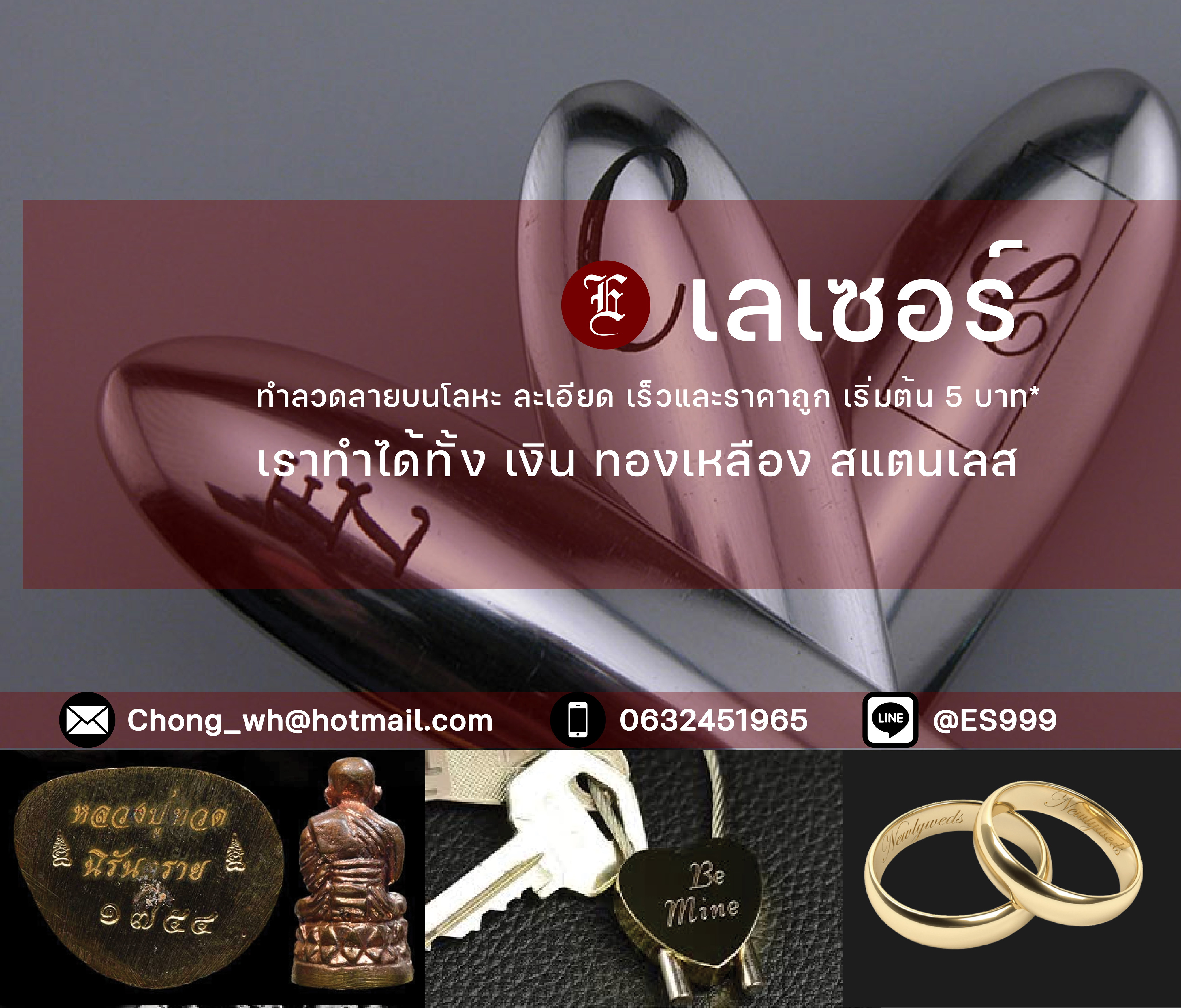 รับเลเซอร์ชิ้นงานโลหะทุกชนิด เงิน ทองเหลือง สแตนเลส งานรันนัมเบอร์ บารโค็ด พระ แหวนรุ่น ของพรีเมี่ยม ไฟแช็ค ราคาเริ่มต้น 5 บาท